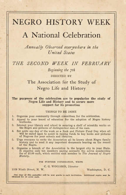 Scurlock Studio Records Archives Center | https://www.nps.gov/cawo/learn/carter-g-woodson-biography.htm?ftag=MSF0951a18 - Negro History Week press release by Woodson, ASALH website |https://asalh.org/wp-content/uploads/2024/02/Black-History-Month-Timeline-General-Branding.pdf